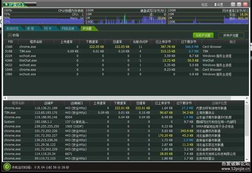 IP雷达5.3绿色版 用于监测CPU,内存,硬盘等状态。显网络连接IP具体地址。