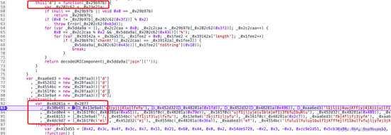 _0x387005 = _0x2877 _0x387005就是最上面的那个大数组进行移动之后的数组,里面包含很多字段信息,这里用来让代码混淆起来,增加分析难度,和某验类似