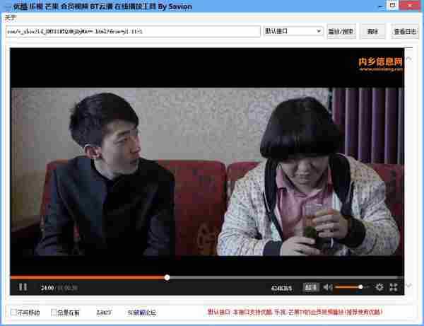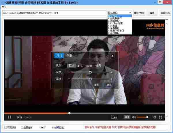1.粘贴视频地址到地址栏、2.选择接口点击播放按钮