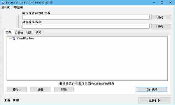 Enigma Virtual Box,软件虚拟化工具、单文件制作工具、虚拟文件打包系统。它可将多个文件封装到应用程序主文件,程序和配套文件打包成一个可执行文件,配套文件也不会被释放至硬盘,从而制作成为单执行文件的绿色软件。它支持所有类型的文件格式,虚拟化后的软件不释放任何临时文件到您的硬盘,文件模拟过程仅在内存运行。该软件的功能有独立的免费程序,同时支持X86和X64二进制文件。